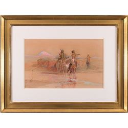 O.C. Seltzer (1877-1957). The Blackfeet Horse Raiders. 13½" x 22" watercolor. Signed lower left.