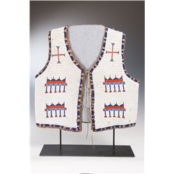 Lakota Vest. 20" x 19" fully beaded in classic colors and design. Solid, translucent and metal beads. 19th century.