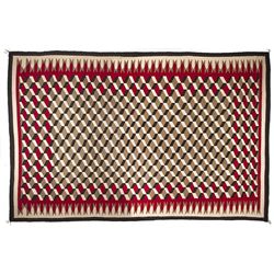Navajo Weaving. 15'9" x 10'1". A Montana sized Navajo floor rug in colors of red, black, white and light brown. A beautifully exec...