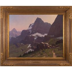 Michael Stack (1947 - ). A Trail in Glacier National Park. 30" x 24" oil on canvas. Signed lower right. Verso: Titled and dated 2004.