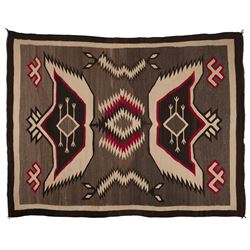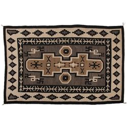 Navajo Weaving. 7'2" x 4'7". Classic J. B. Moore Plate XXX variant weaving. Woven in all natural colors of grayish-brown, white, c...