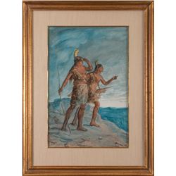 Julian Scott (1846-1901). Two Indian Scouts, Walpi, Arizona 1892. 13½" x 9" watercolor. Signed and dated 1892 lower left.