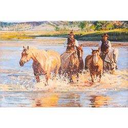 C.M. Dudash (1952 - )(CA) Ridin' High 20" x 30" oil on linen panel Signed lower right Verso: Titled, signed and dated 10/15/13. $8,000...