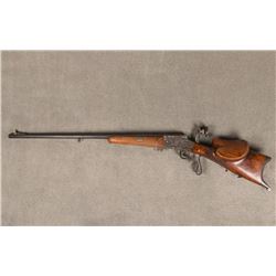 German Schuetzen Rifle Hamel AYDT maker. Carved walnut stock, engraved action. Original sites. Falling Block action. Carved walnut stock. 8.15 x 46 ca