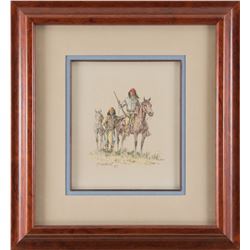 Olaf Wieghorst (1899-1988). Scouts. 9 ¾" x 8 ¼" mixed media. Signed lower left.