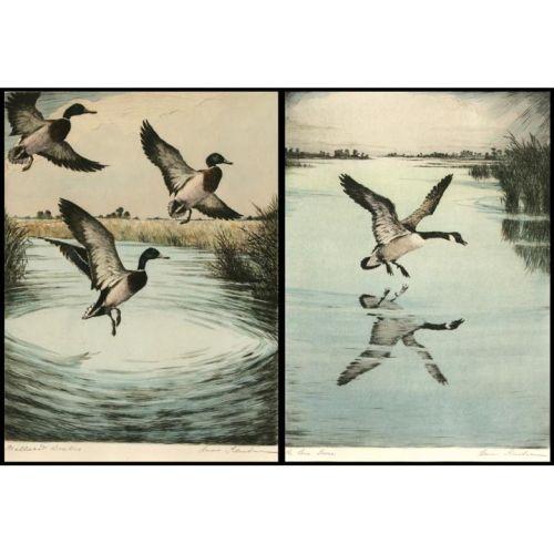 Hans Kleiber (1887-1967) Two Hand Colored Etchings. (1) Mallard Ducks, 9 3/4" x 7 1/2", signed LR. (2) The Lone Goose, 11 3/4" x 8 3/4".