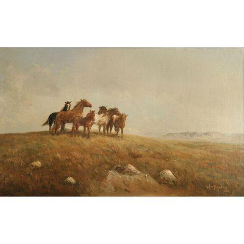 William Standing (1904-1951) Horses on a Hill, 18" x 30" oil on canvas on board, signed LR, dated 1932