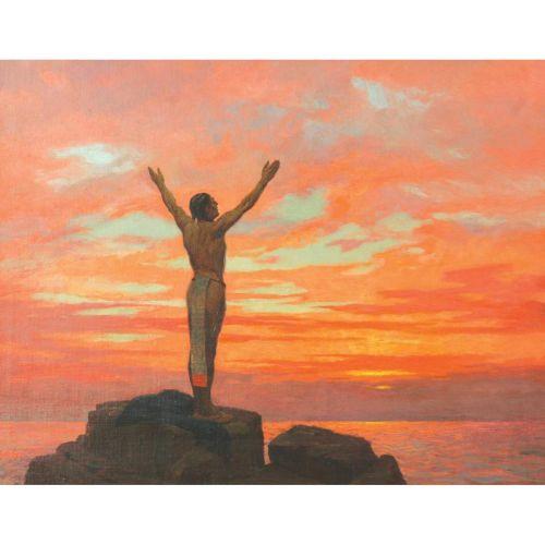 Fletcher Ransom (1870-1943) The First American, 30" x 39" oil on canvas, signed LL