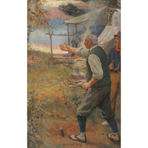 Griswold Tyng (b. 1883) Pitching Horseshoes, 22" x 14" oil on canvas, signed LC
