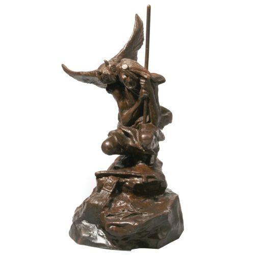Charles M. Russell (1864-1926) Secrets of the Night, Bronze Sculpture, 11 3/4" tall, 6 1/2" long, c. 1926, Signed, Cast by Nelli Art Bronze Works, L.A. Provenance: George D. Sack. The Estate of Nancy C. Russell. Earl C. Adams. Mr. & Mrs. William E. Weiss, Jr., New York, New York, 1960. The Weiss Family Trust.