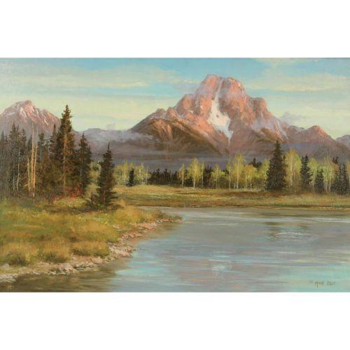 Mark Ogle (b. 1952) Mt. Moran, Teton National Park. 20" x 30" oil on board, signed LR