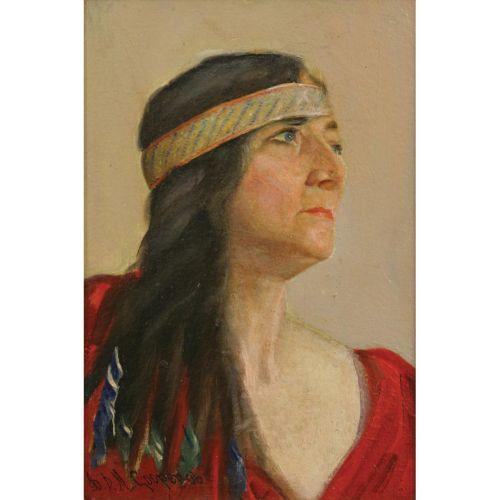A.D.M. Cooper (1856-1924) Navajo Woman, 18" x 12" oil on board, signed LL, dated 1906