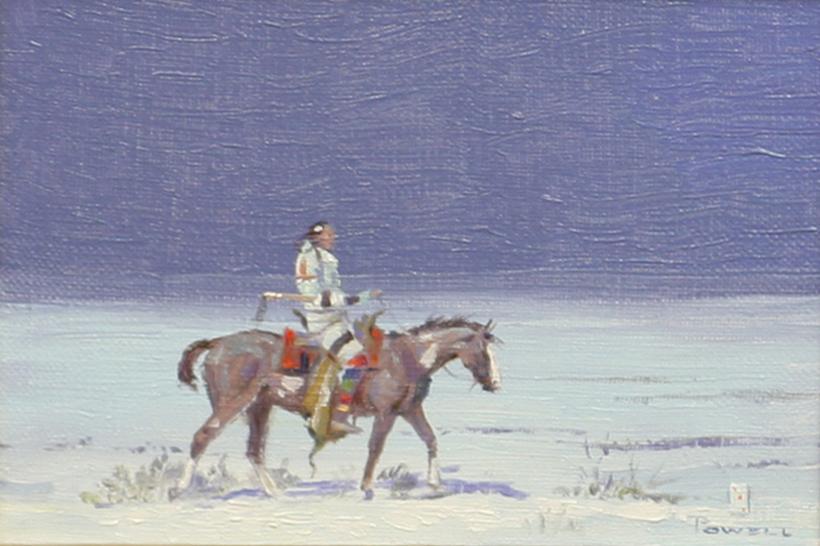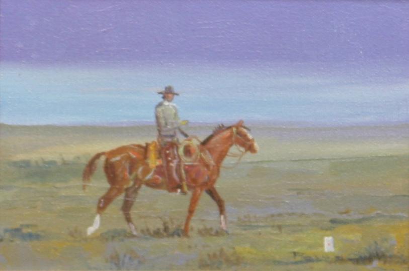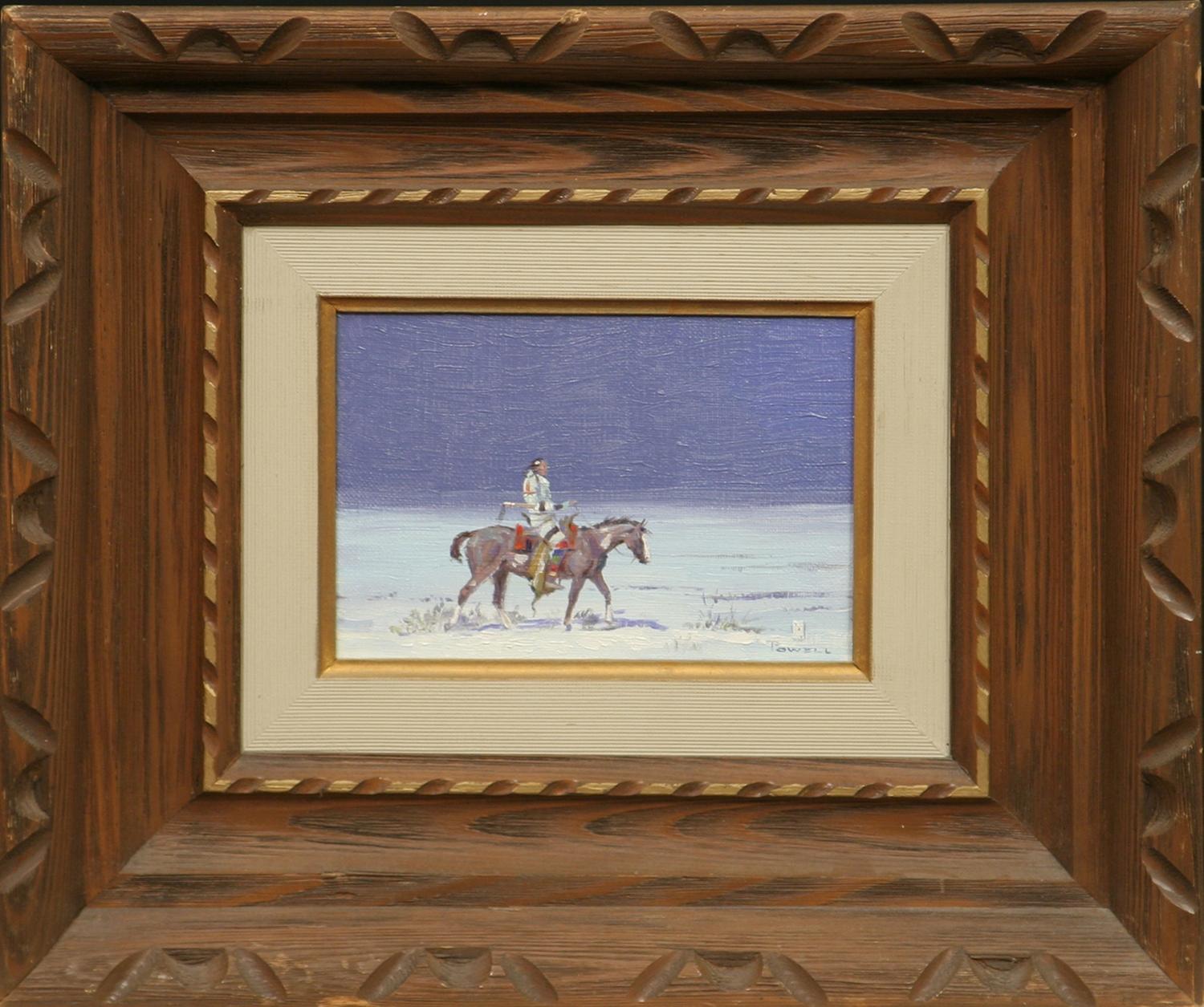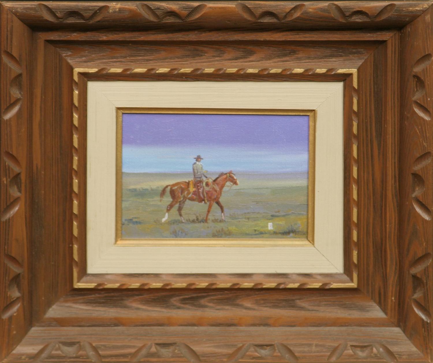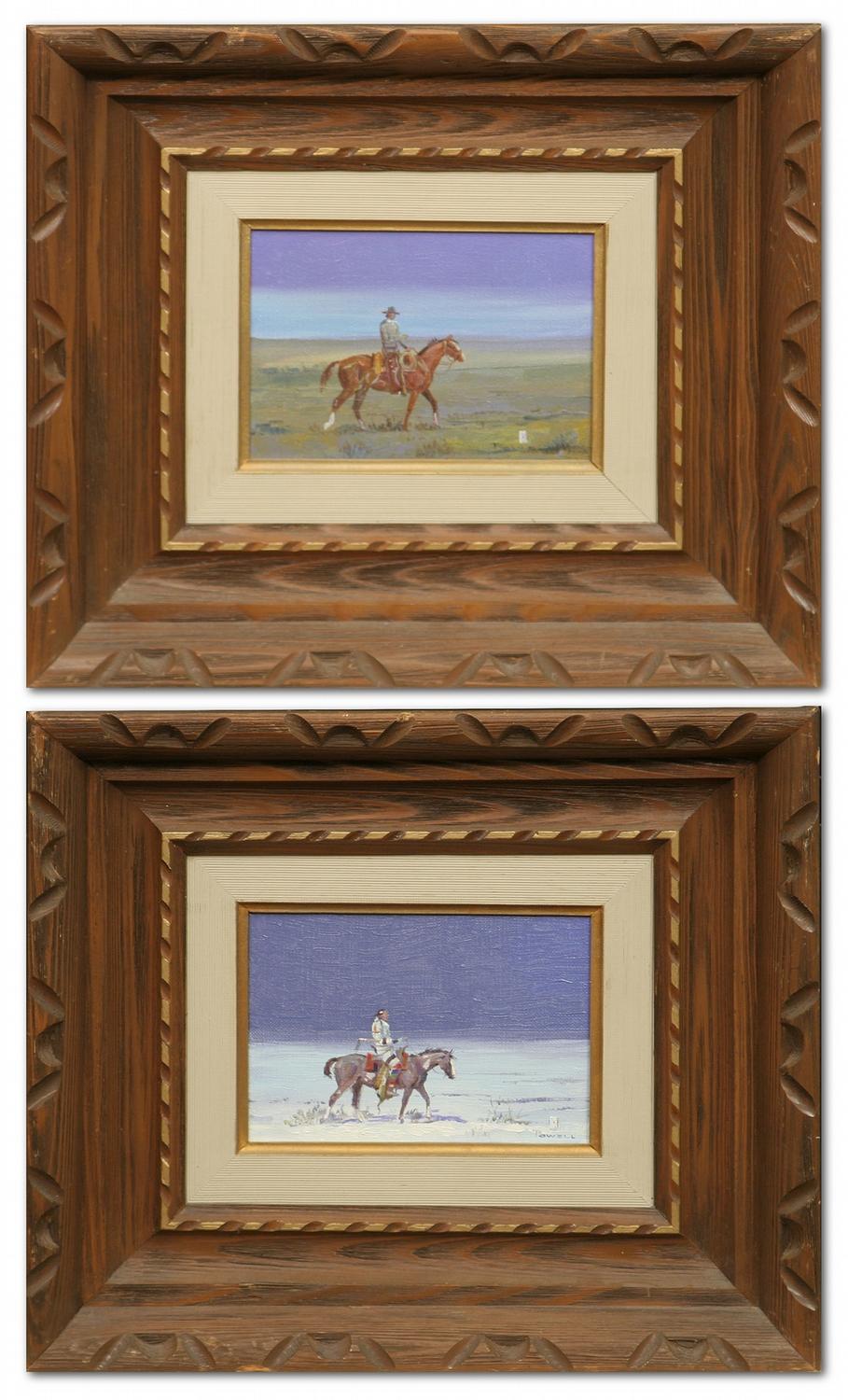 Ace Powell (1912-1978). Pair of Paintings. Both 5" x 7" oil on canvas. Both signed lower right. (1) Still of the Night. (2) Nightrider. (est $3,000-5,000) Condition Report: Both black light clean