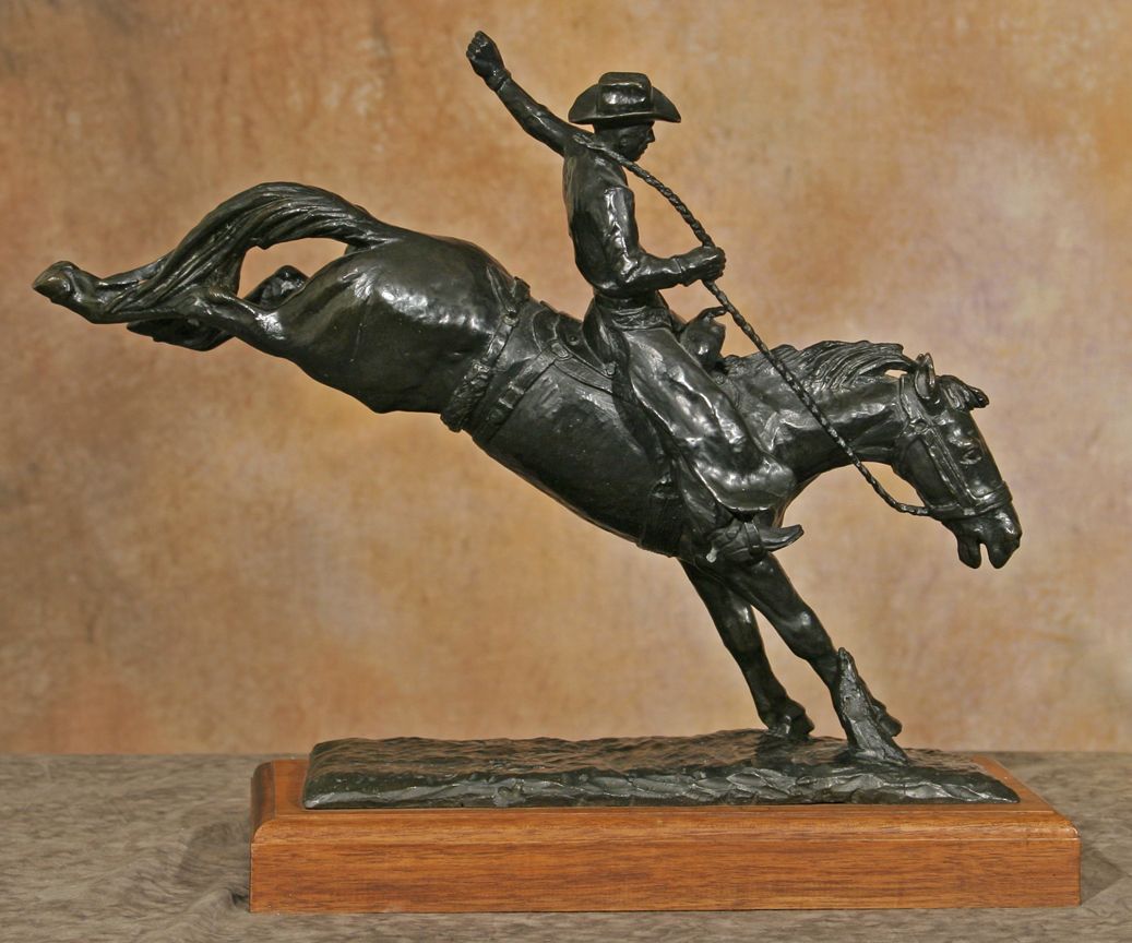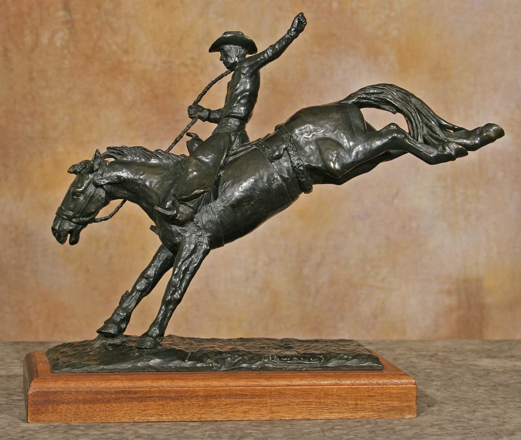 Ace Powell (1912 - 1978). Takin' The Kinks Out. 15" x 18" x 6" bronze. Inscribed: [ace card] POWELL 14/36. Marked: Powell Foundry. Condition reports can be viewed at www.marchinmontana.com/docs/2013CR.pdf