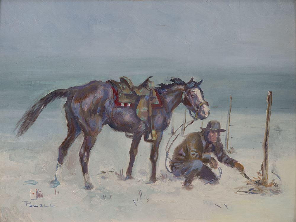 Ace Powell (1912-1978). Ranch Hand. 12" x 16" oil on canvasboard. Signed lower left.