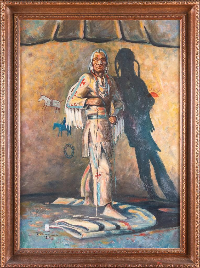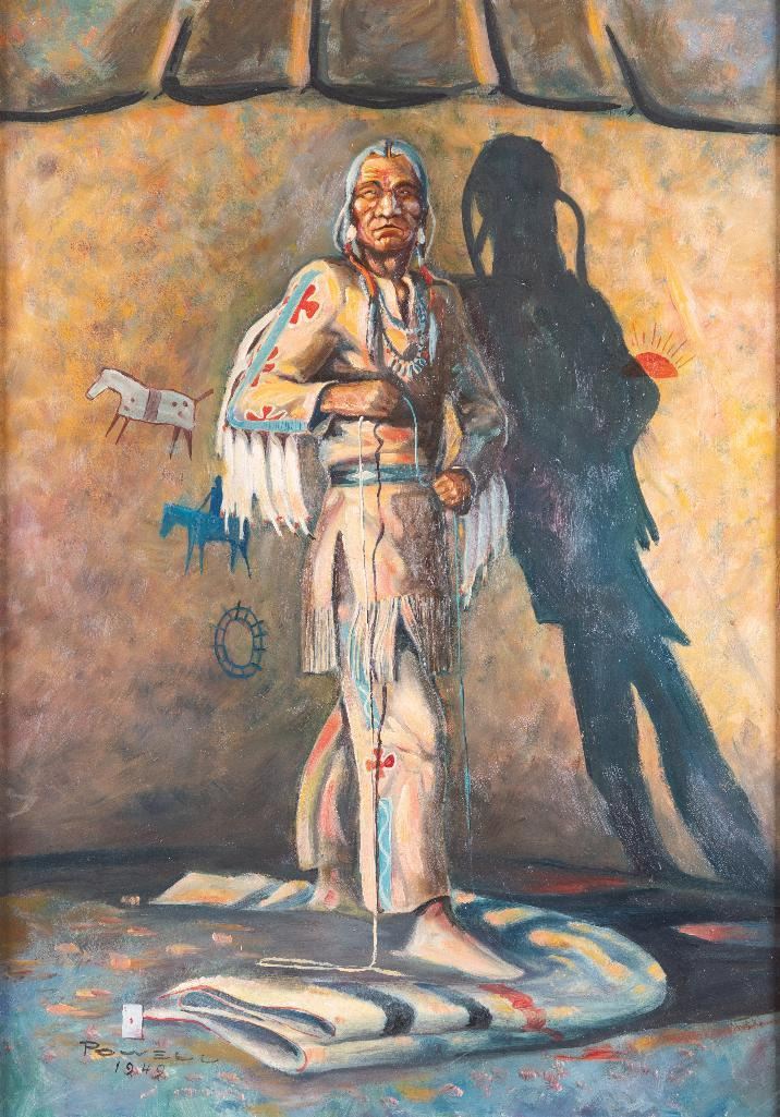 Ace Powell (1912-1978) Blackfoot Elder 30" x 21" oil on canvasboard Signed and dated 1949 lower left $2,000-3,000