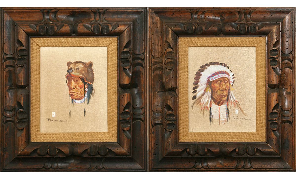 Ace Powell (1912 - 1978). Northern Plains Portraits. 10" x 8" oils on canvas. Each signed: [ace card] POWELL. Condition reports can be viewed at www.marchinmontana.com/docs/2013CR.pdf