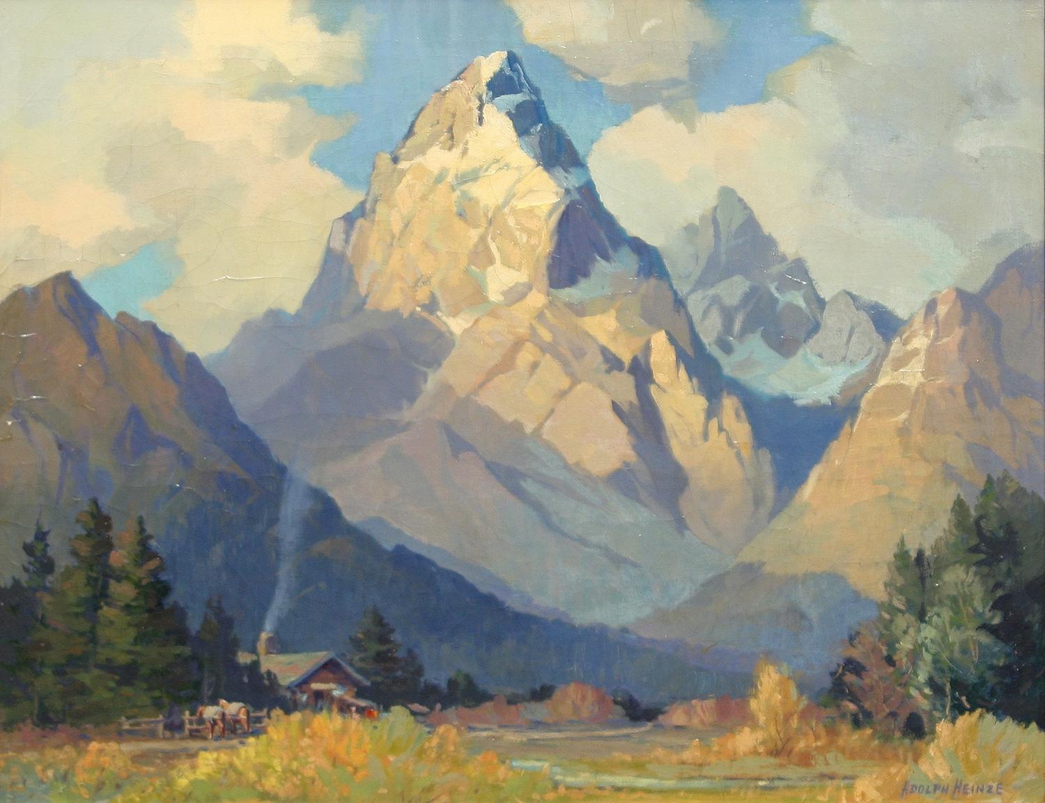 Adolph Heinze (1887-1958). Mountain Landscape. 24" x 30" oil on canvas. signed lower right. (est $2,000-3,000) Condition Report: Black lights clean
