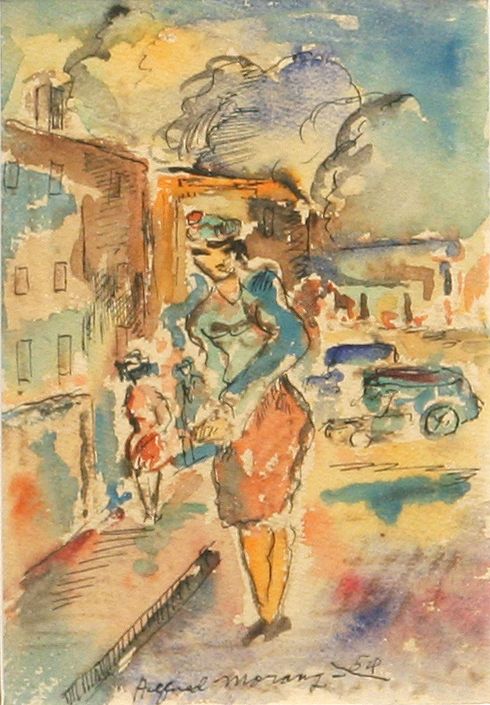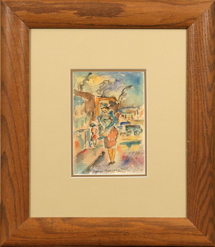 Alfred Morang (1901 - 1958). Street Scene. 6.75" x 5" watercolor. Signed lower center: Alfred Morang 54 Condition reports can be viewed at www.marchinmontana.com/docs/2013CR.pdf
