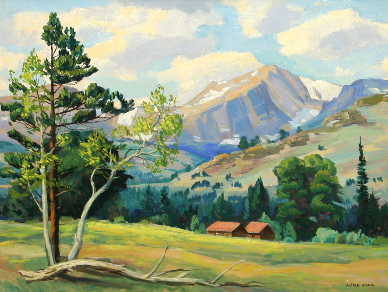Alfred Wands (1904-1998). Rocky Mountain High. 25" x 30" oil on canvas. signed lower right. (est $2,000-3,000) Condition Report: Black lights clean