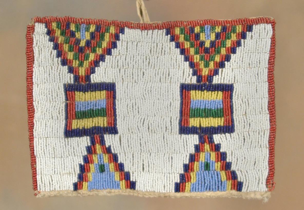Arapaho Beaded Mirror Bag. 6" x 9". 19th century. (est $500-$1,000) Condition Report: Slightly discolored from age and use. Beadwork excellent