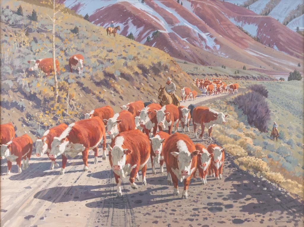 Art Renshaw (20th C.) Cattle Drive 30" x 40" oil on canvas Signed lower right $3,000-4,000