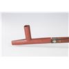 Assiniboine Pipe. 7 ½" x 4" carved t-style catlinite bowl. Stem is 22" long with a bone mouthpiece, carved out of cedar and decorated with brass wraps and old coins. Penny is dated 1905. Note: Original note inside pipe states Plain Indian calumet type pipe. Made of Catlinite. From the Peace River area of Alberta, Canada.
