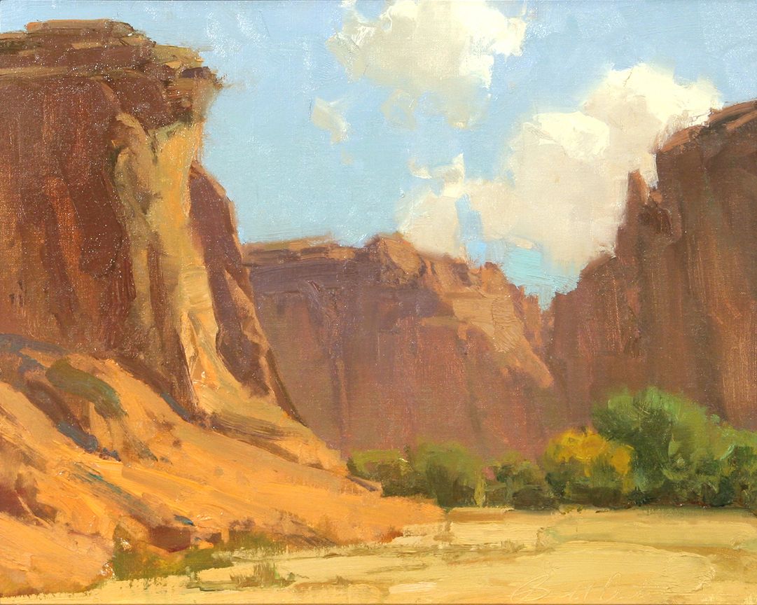 Bill Anton (1957 - ). A Touch Of Fall - Canyon de Chelly. 16" x 20" oil on board. Signed verso: Bill Anton ©. Condition reports can be viewed at www.marchinmontana.com/docs/2013CR.pdf