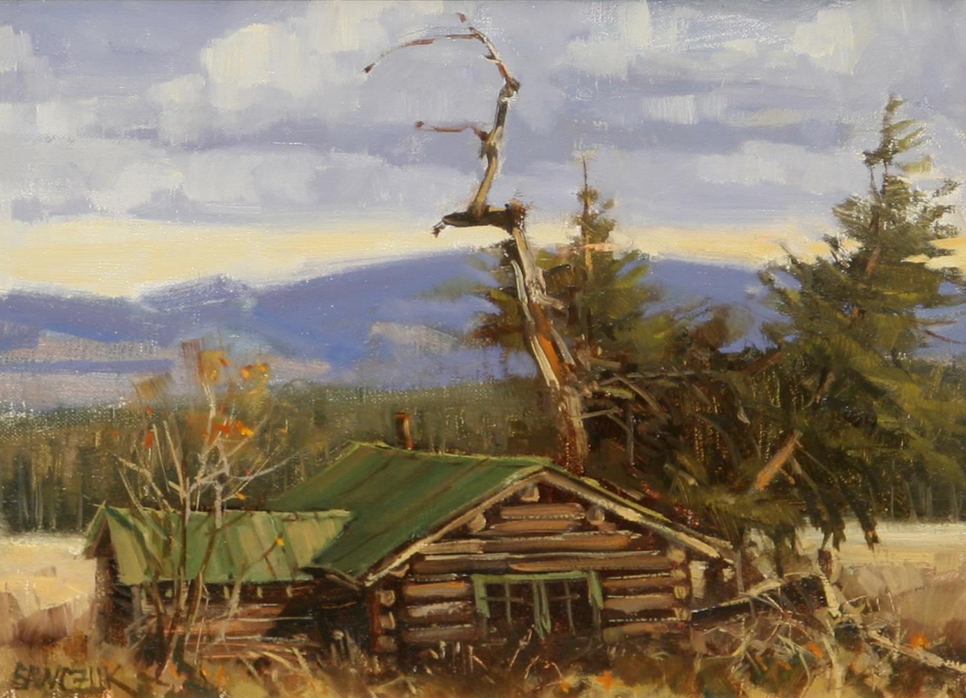 Bill Sawczuk (20th century). A View From The White Grass. 9" x 12" oil on board. signed lower left. (est $1,000-1,500) Condition Report: Black lights clean