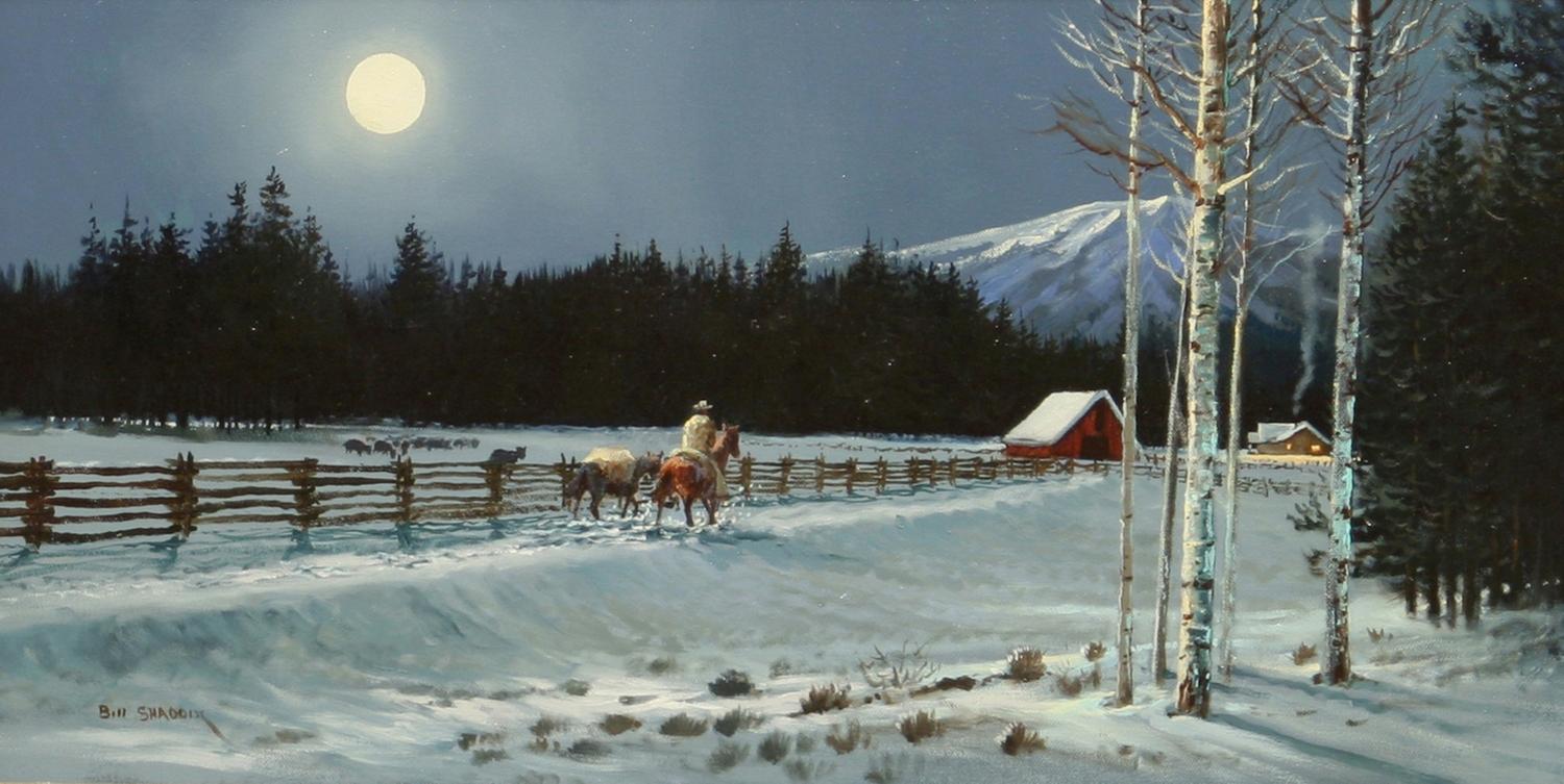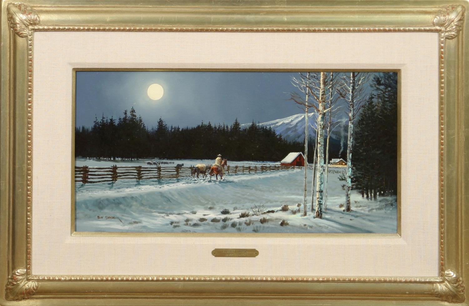Bill Shaddix (b. 1931). Almost Home. 12" x 24" oil on canvas. signed lower left. (est $1,000-1,500) Condition Report: Black lights clean. Nice silver & gold frame