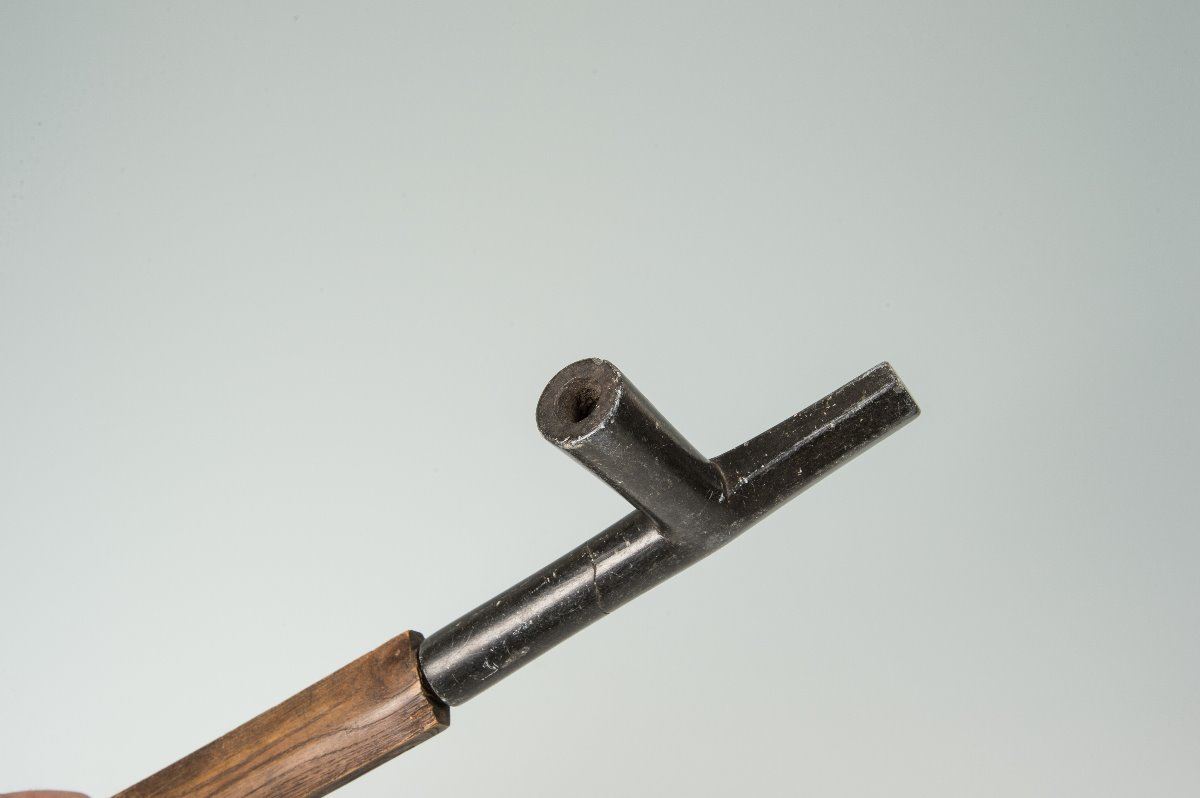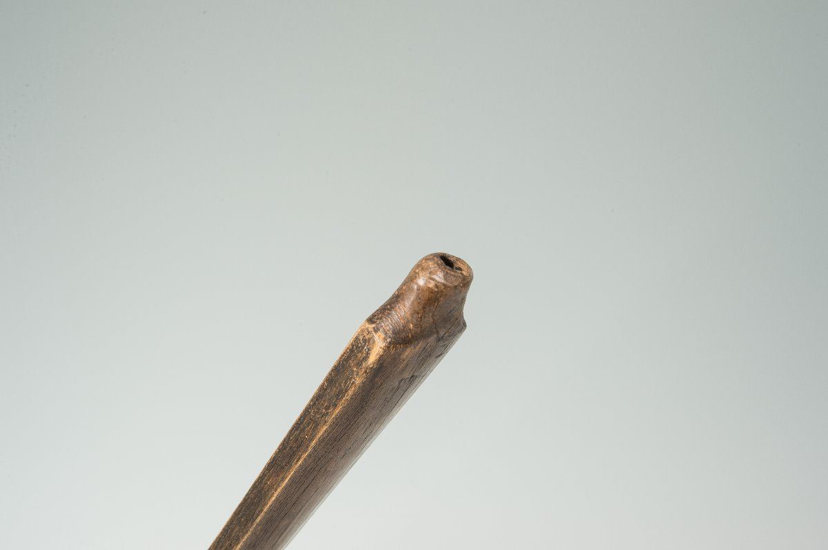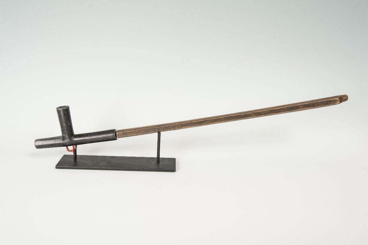 Blackfeet Pipe and Stem. Bowl is blackstone and is 6 ¾" x 3 ½". Wood stem is 19" long.