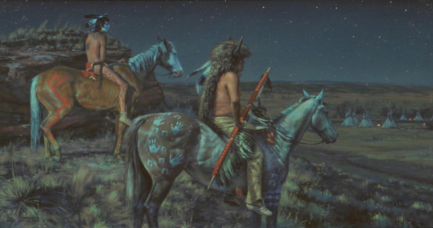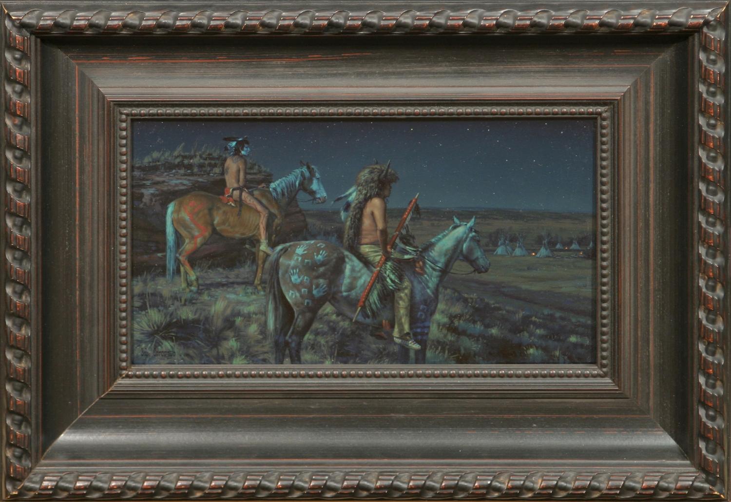 Bob Coronato (b. 1970). Crows Steal'n Horses. 9" x 15" oil on board. signed lower left. (est $4,000-6,000) Condition Report: Black lights clean and in fine frame