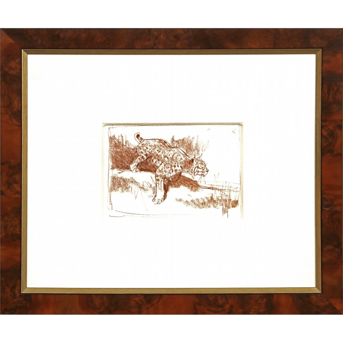 Bob F. Kuhn (1920 - 2007). Lynx. 6.25" x 9.25" conte crayon. Signed lower right: Kuhn.
