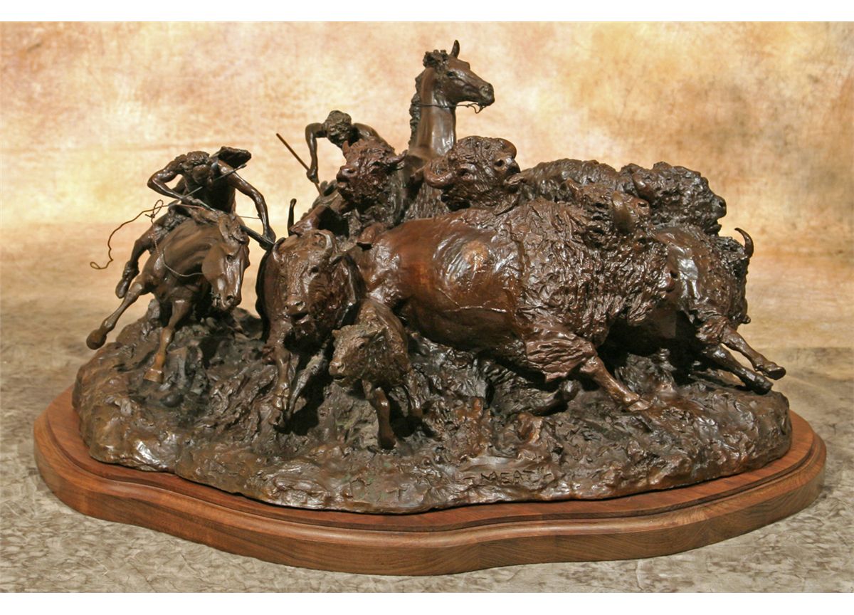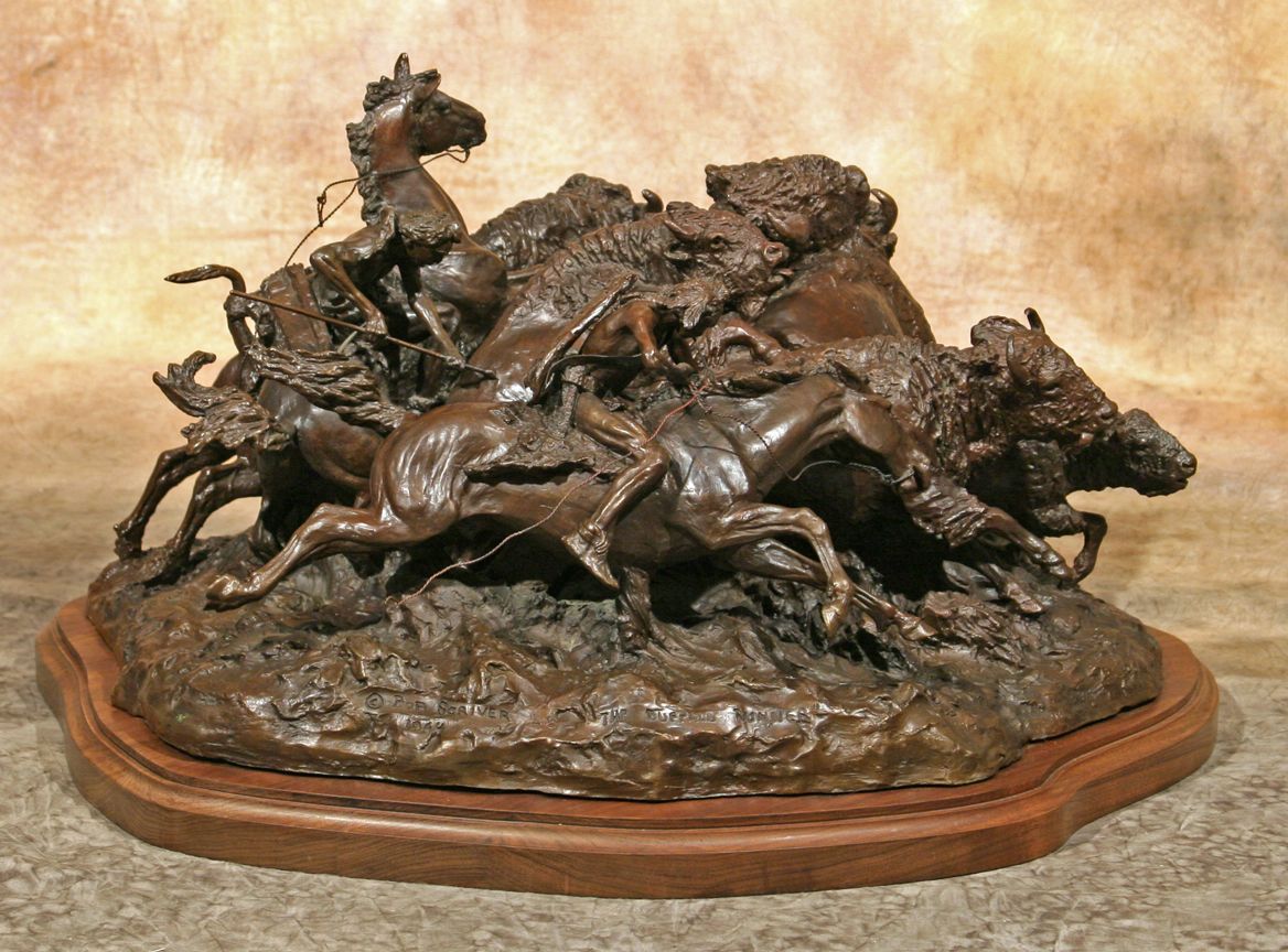 Bob Scriver (1914 - 1999) CA. Real Meat. 16" x 30" x 27" bronze. Inscribed: © BOB SCRIVER 1964 -8-. Marked Powell Bronze Foundry & Bighorn Foundry. Original certificate included. Provenance: Ex- Archie Miller collection, Collection of Dr. Delwin & Karen Bokelman, PA & pictured in their book Precious Dreams, page 28. Internet, absentee & telephone, absentee & telephone bidders please be advised that this bronze is of substantial weight. Please call March in Montana an estimate prior to bidding - (307) 635-0019. Condition reports can be viewed at www.marchinmontana.com/docs/2013CR.pdf