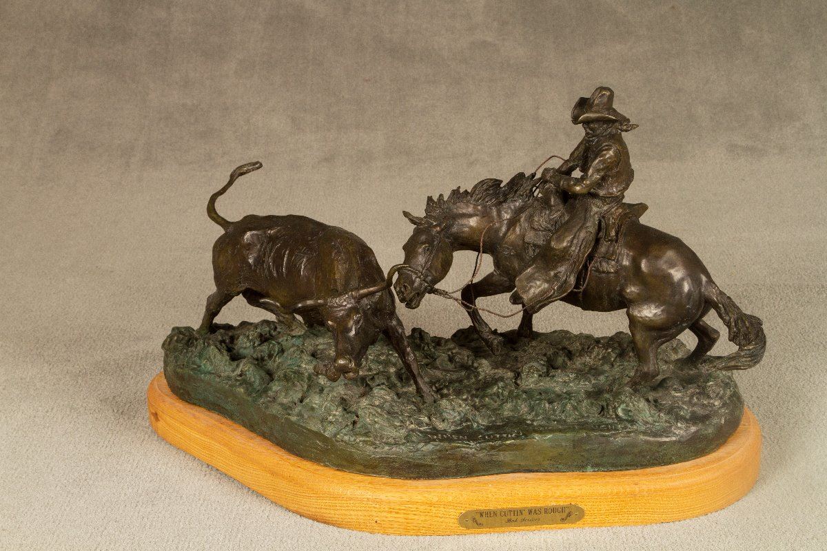 Inscribed: "When Cuttin' Was Rough", © Bob Scriver 66/110, 1988.