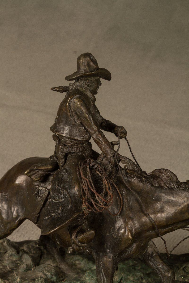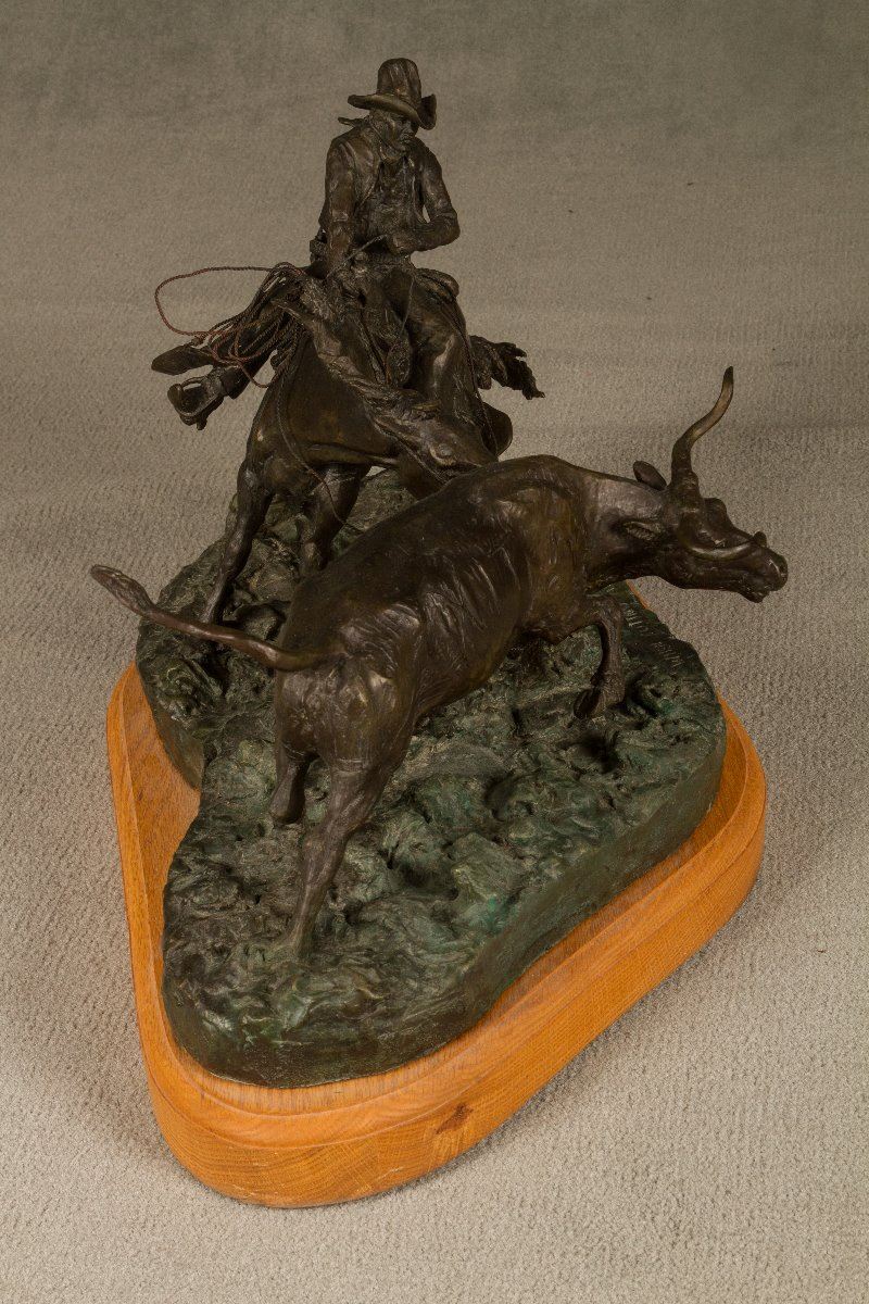 Bob Scriver (1914-1999). When Cuttin' Was Rough. 13" x 14" x 24" bronze on swivel base