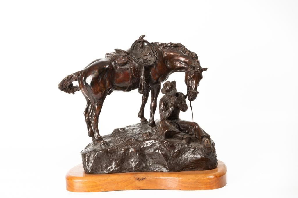 Bob Scriver (1914-1999)(CA) Lone Cowboy 12" x 12" x 8" bronze Inscribed: Lone Cowboy, (c) Bob Scriver, 1960, Browning Montana $1,500-2,500