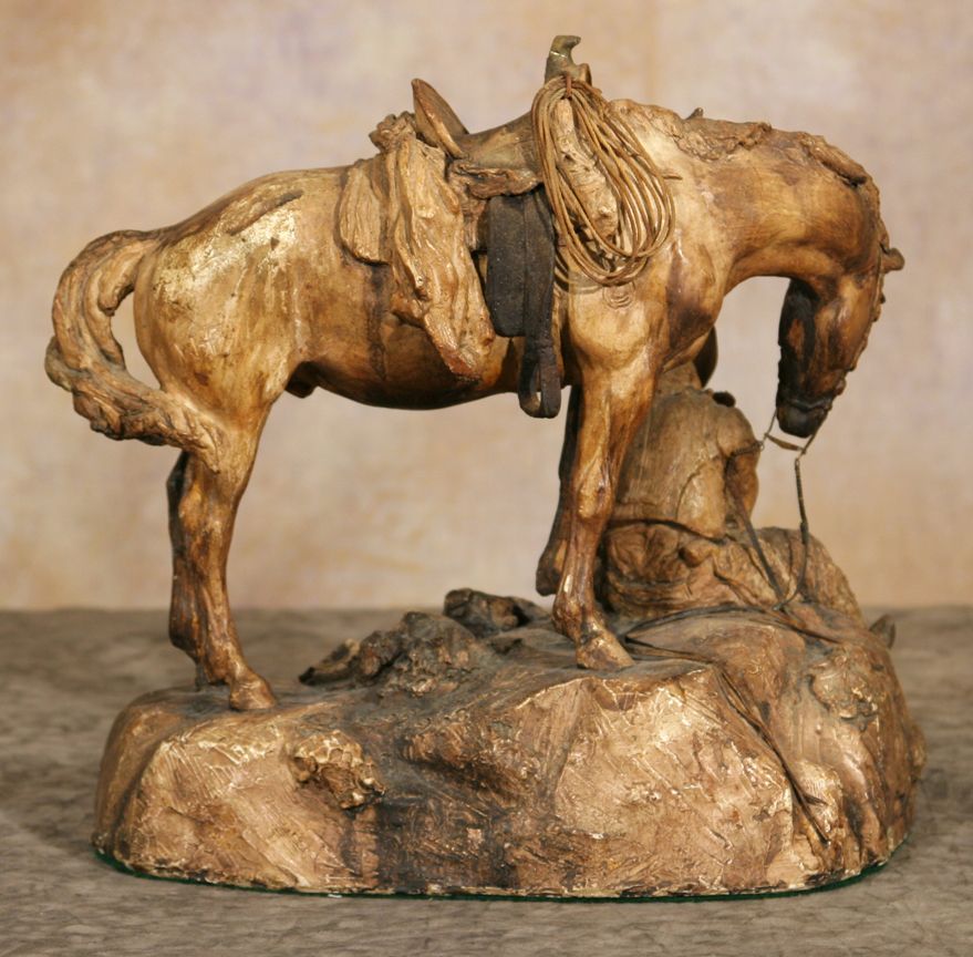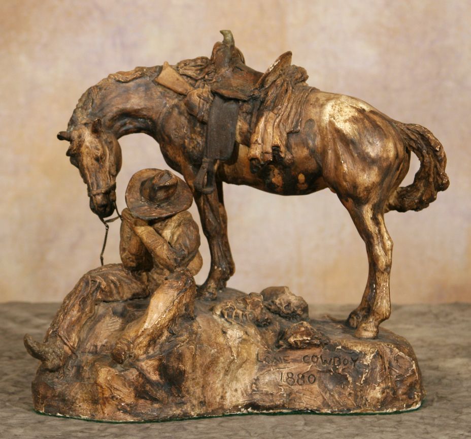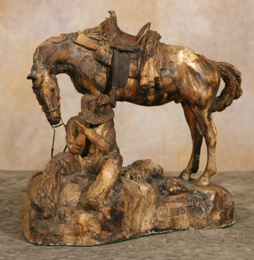 Bob Scriver (1914 - 1999) CA. Lone Cowboy, 1880. 12" x 13" x 9" plaster model. Inscribed © BOB SCRIVER 1968. Condition reports can be viewed at www.marchinmontana.com/docs/2013CR.pdf