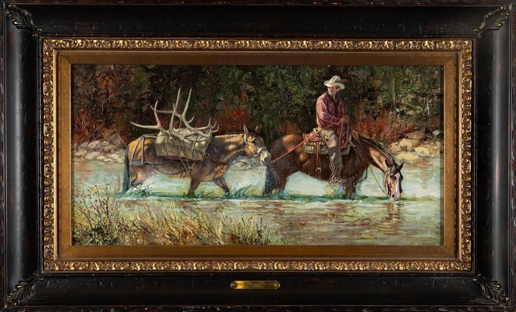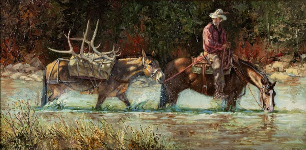 Brent Flory (b. 1955) The Best Part of the Trail 12" x 24" oil on board Signed lower right $1,000-1,500 Provenance: Private Collection, Kalispell, MT.