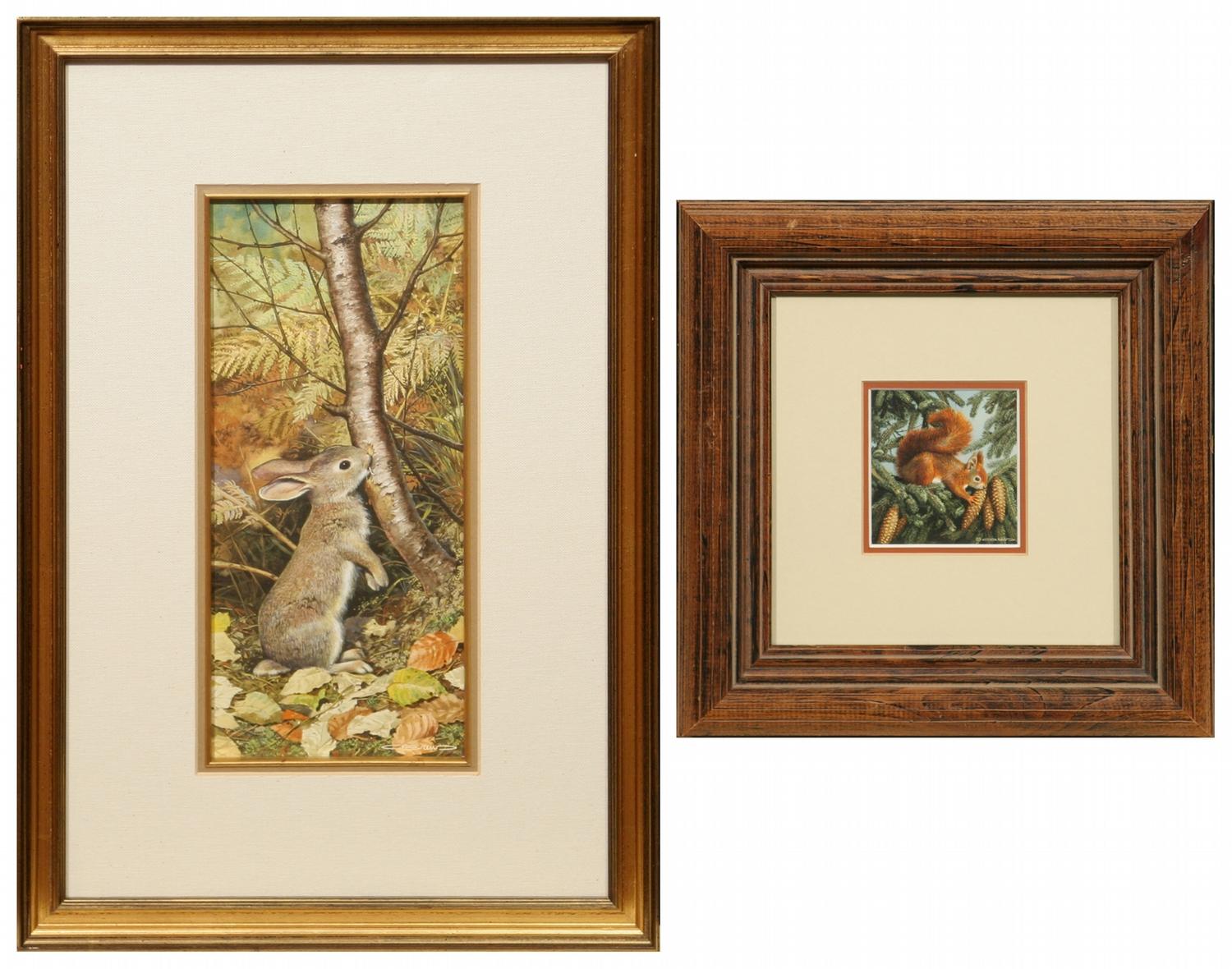 Carl Brenders (b. 1937). Pair of gouaches. (1) Rabbit. 12" x 5 ¼". (2) Red Squirrel. 3 ½" x 3". both signed lower right. (est $4,000-6,000) Condition Report: Both in excellent condition and nicely framed