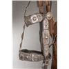 Virtually covered with engravedsterling silver plates, studs and conchos. Crockett silver mounted bit. Fine condition.