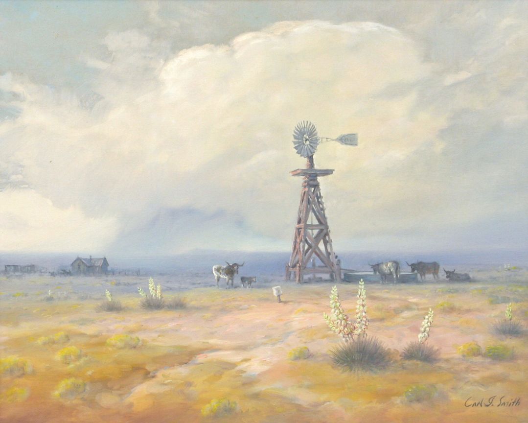 Carl J. Smith (1928 - ). Longhorn Country. 16" x 20" oil on canvas. Signed lower right: Carl J. Smith. Condition reports can be viewed at www.marchinmontana.com/docs/2013CR.pdf