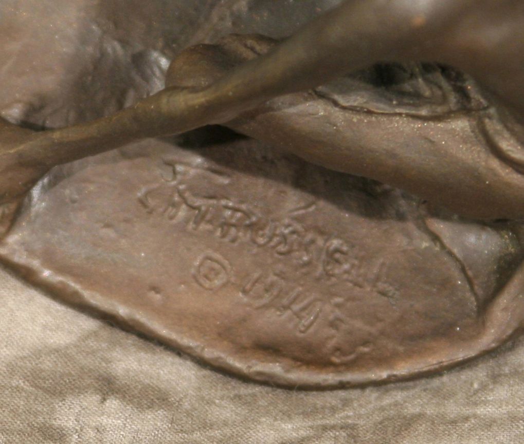 Charles M. Russell (1864 - 1926). The Snake Priest. 4" x 4" x 8" bronze. Inscribed: C. M. RUSSELL © 1914. Recast with faint Zoppo Foundry mark. Condition reports can be viewed at www.marchinmontana.com/docs/2013CR.pdf