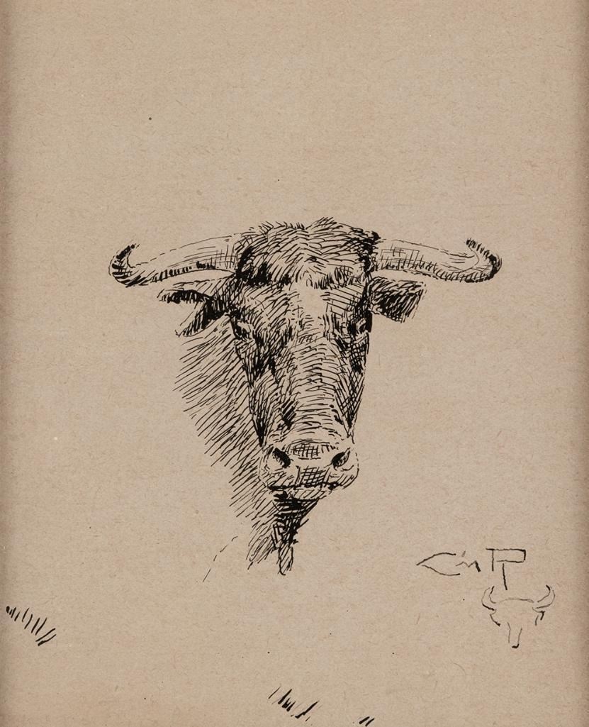 Untitled (Head of a Steer) Illustration for Trails Plowed Under, 1928