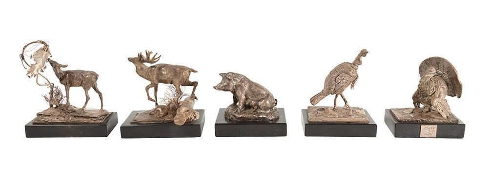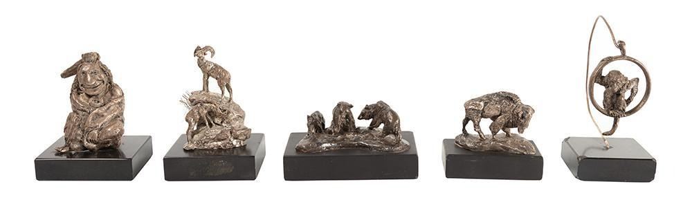 This lot consists of a complete series of ten sculptures cast in sterling silver by the C.M. Russell Museum. Initially available in the early 1970s, these works were promoted as being created from the finest, most detailed and delicate works by Russell from the Trigg Collection of the C.M. Russell Museum. Strictly limited to an edition of 100, these works were originally offered exclusively to Museum members. Along with the original models from the Trigg collection, a complete set of the works cast in sterling silver is held in the permanent collection of the C.M. Russell Museum. Sizes vary from 1 ¾” to 6” in height.