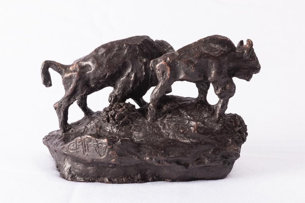 Charles M. Russell (1864-1926) Two bronzes: Buffalo Each 4" x 6" x 3" bronzes Inscribed: C.M.R., Findlay Galleries, INC, TP $1,000-1,500