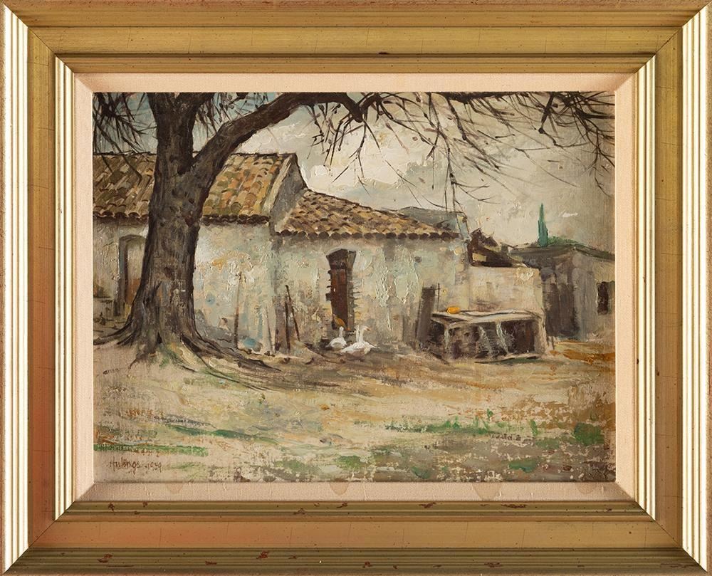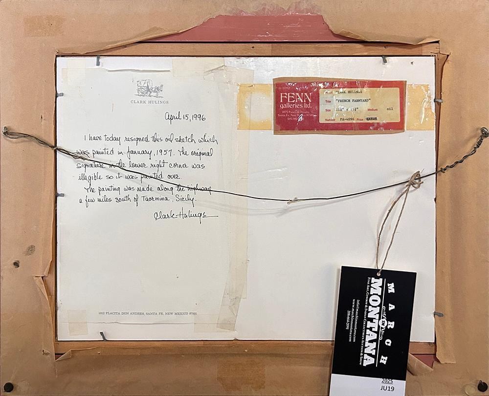 Verso: Old Fenn Galleries sticker. Signed note from Clark Hulings.