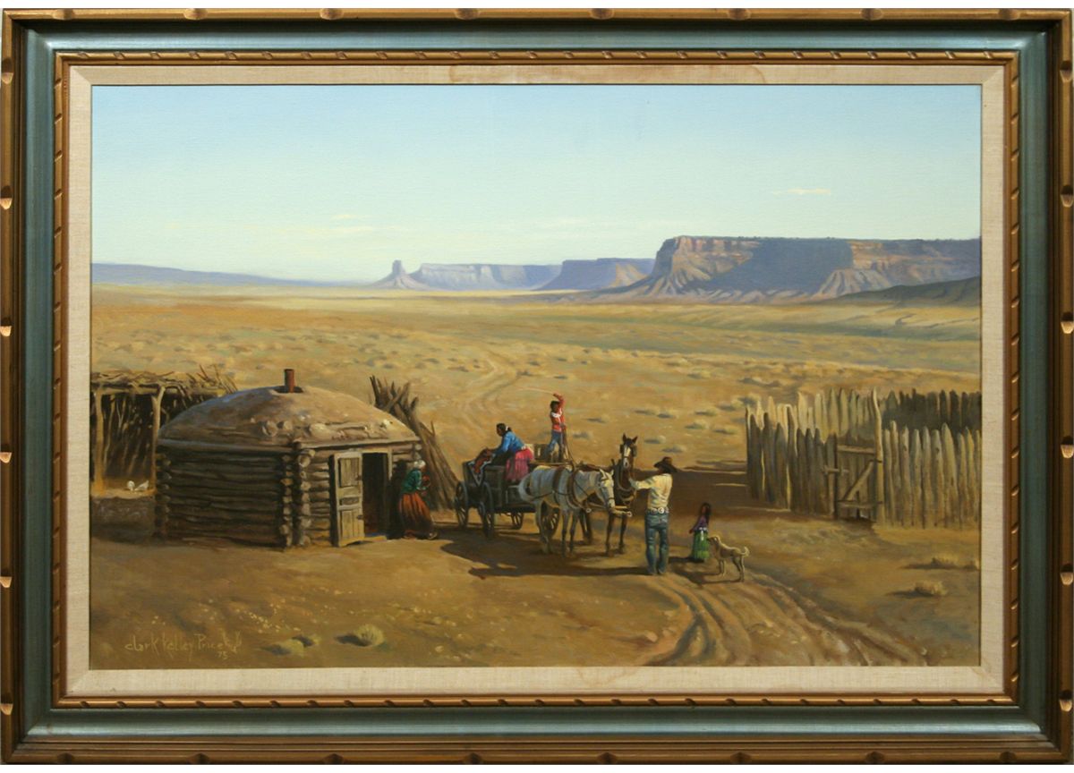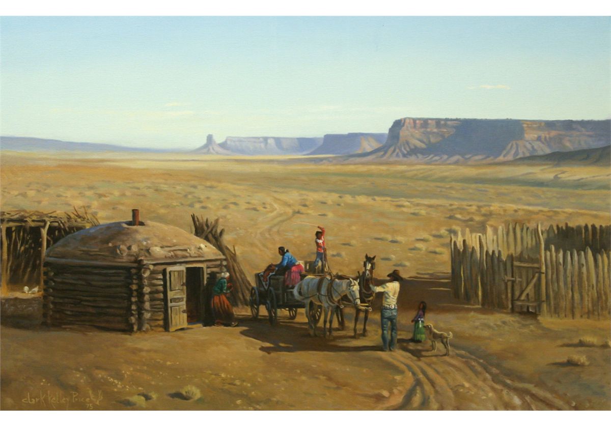 Clark Kelley Price (b. 1945) CA. Going To Town. 36" x 48" oil on canvas. Signed lower left: Clark Kelley Price '75 [elk head]. Condition reports can be viewed at www.marchinmontana.com/docs/2013CR.pdf