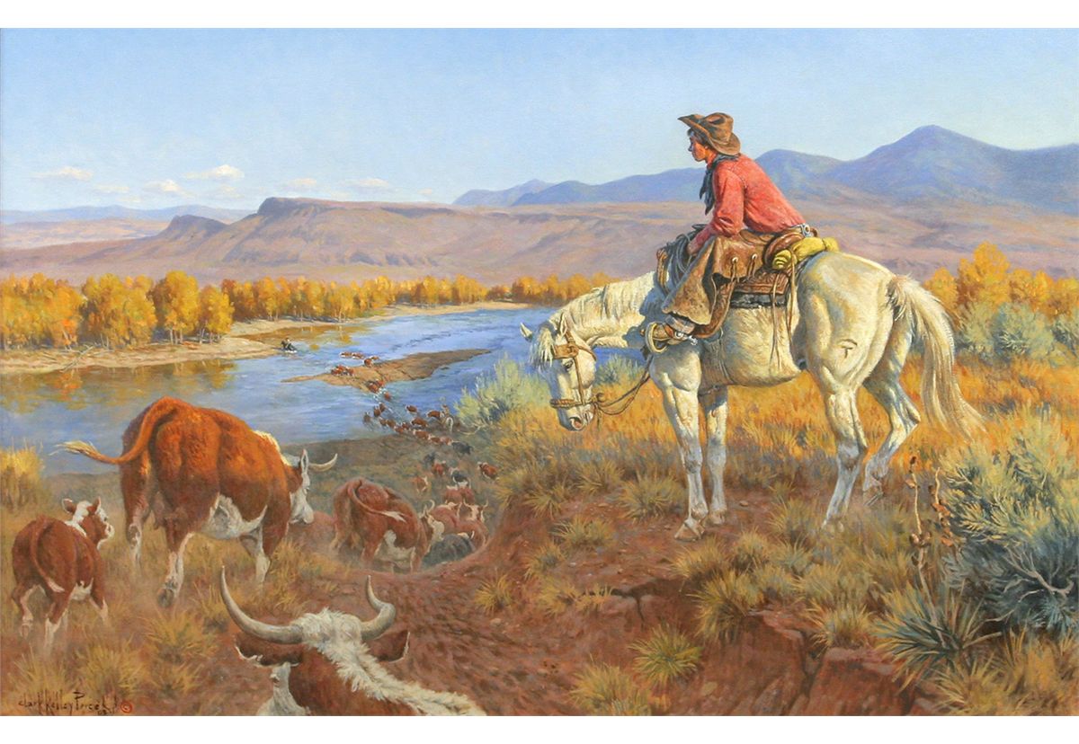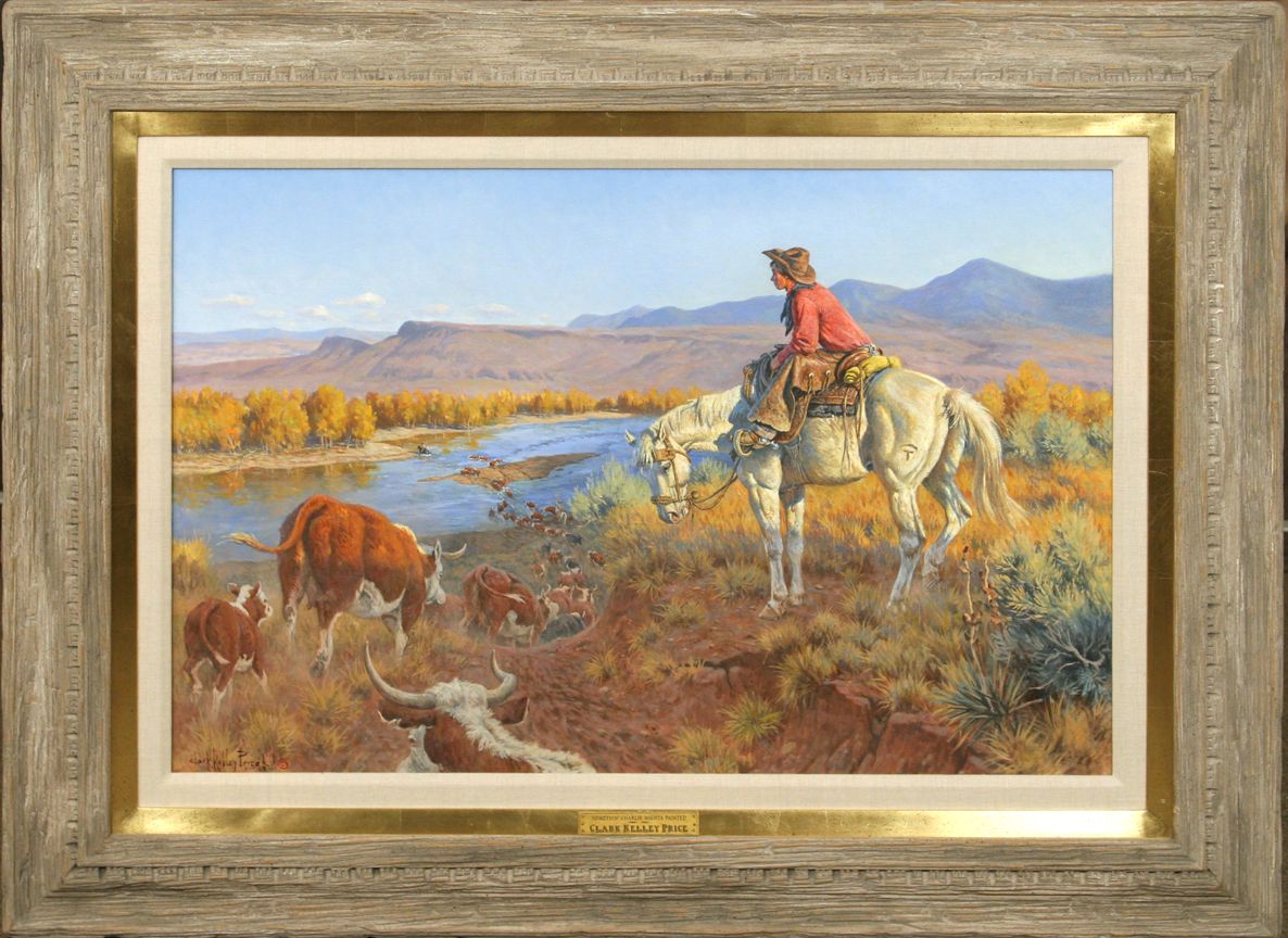 Clark Kelley Price (b. 1945) CA. Something Charlie Mighta Painted. 24" x 36" oil on canvas. Signed lower left: Clark Kelley Price '03 [elk head] © Condition reports can be viewed at www.marchinmontana.com/docs/2013CR.pdf