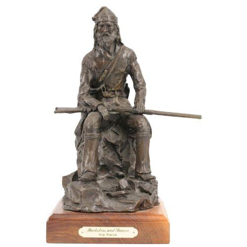 Cody Houston (20th century) Buckskins and Beaver, Bronze Sculpture, #10/20, 15" high, 9 ½” long, On 1 ¾” walnut stand